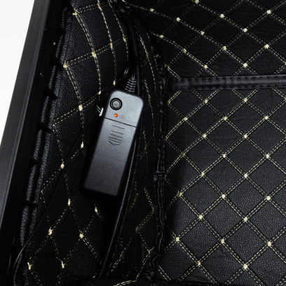 maletero con respaldo acojinado de aluminio negro con luces led laterales y capacidad de 45 L.